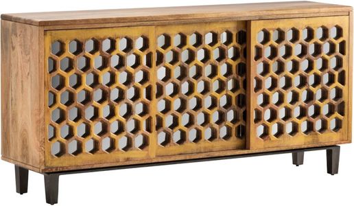 The Crestview Collection Bengal Manor Mango Wood 3 Sliding Door Cabinet with Honeycomb Mirror is perfect for your dining room. It will give you quick access to your table linens, fine China, cutlery, and glassware for setting the perfect table.Read More