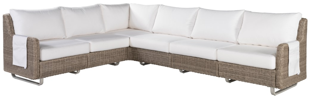 The Flexsteel® Vista Canvas Natural Outdoor Modular Sectional combines durable aluminum, fabric, and wicker materials to offer a comfortable and resilient seating solution. Designed for outdoor spaces, it features modular pieces that allow for flexible arrangements, ensuring lasting performance and relaxation in various weather conditions.Read More