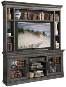 With a touch of rustic charm, this console with hutch from the Sundance collection creates an impressive focal point. Perfectly sized for televisions up to 92 inches, it offers storage, display, and thoughtful functionality. Its handsome hand-applied, multi-step Smokey Grey finish complements any room's décor while conveying unique character.Read More