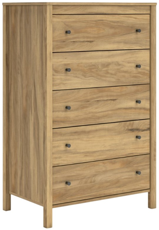 This chest of drawers puts the dream of a casual bedroom retreat beautifully within reach. A warm light brown finish over replicated hickory grain exudes a homey vibe. The smooth-gliding drawers are packed with storage possibilities.Read More