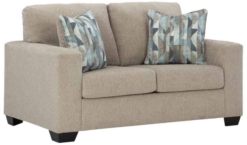 You’re in for a neat treat with this loveseat. Its comfy seats are covered in soft, textural upholstery, and the wide track arms are eager to support your quest for total relaxation. Distressed abstract toss pillows bring a fresh breath of contemporary style while accentuating the loveseat's color.Read More